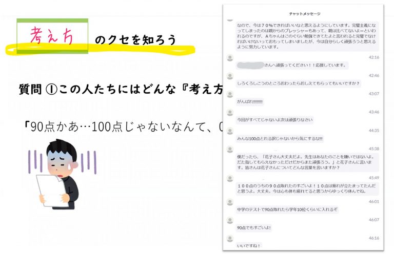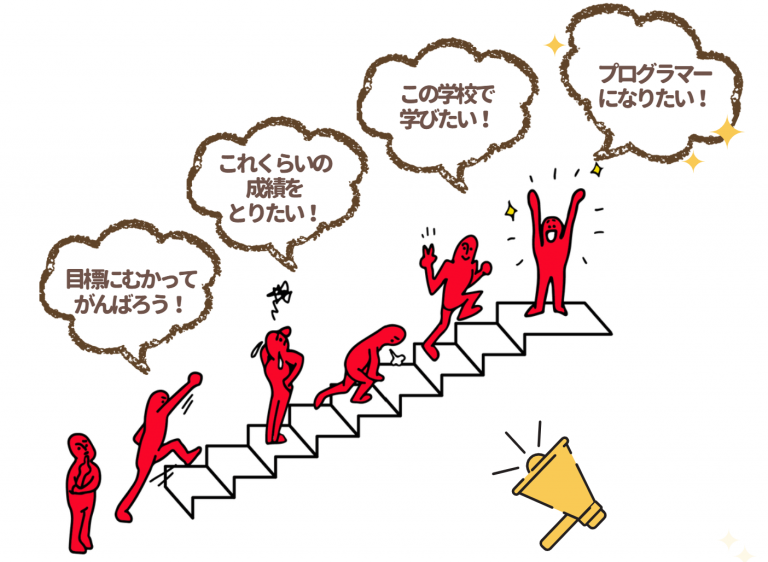 「どんなことが学びたい?」「今の成績はどのくらい?」「将来から逆算したら?」など